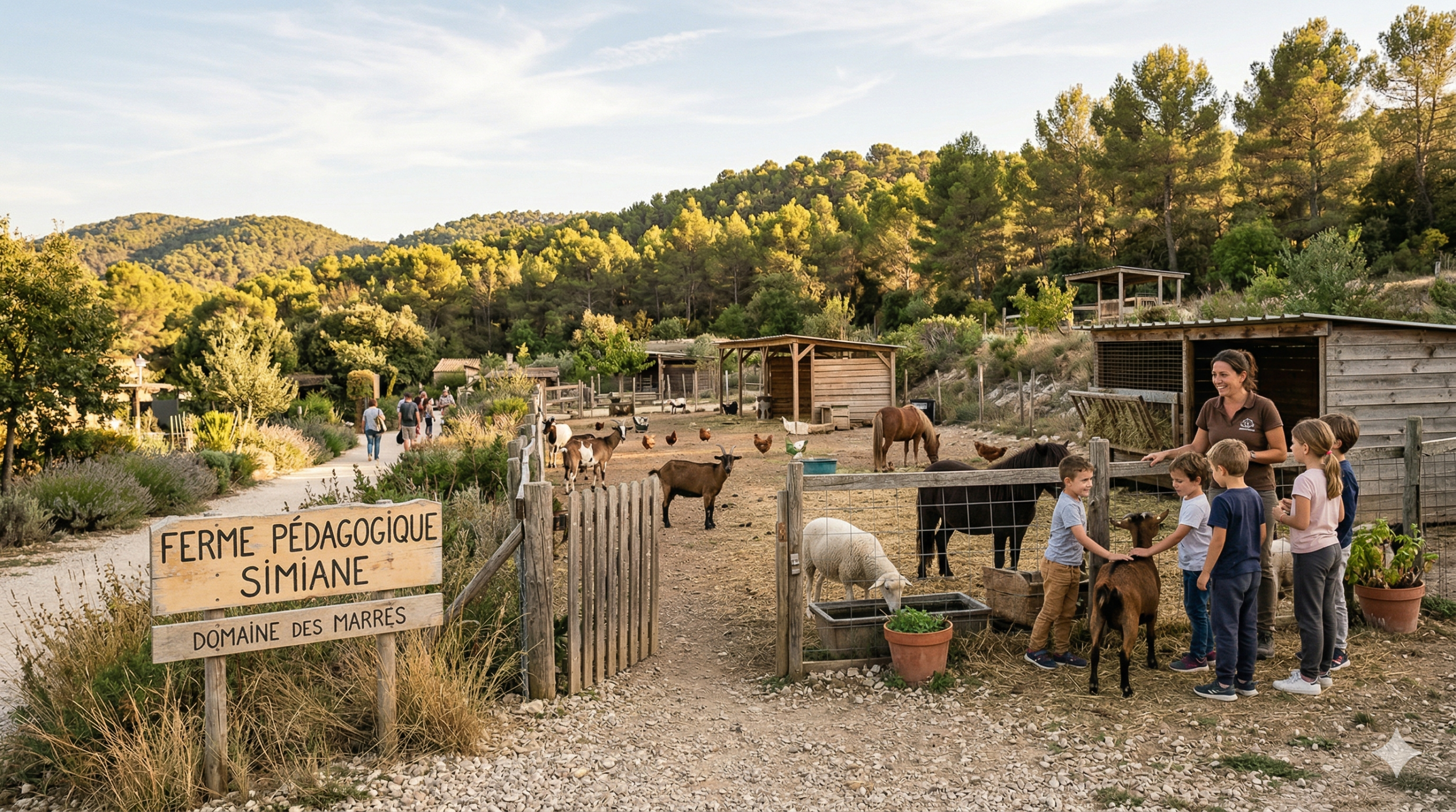 La ferme pédagogique de Simiane-Collongue appartient à la commune. Elle fait partie du domaine des Marres, un espace naturel géré par la mairie. Son objectif est clair : faire découvrir la vie agricole de façon concrète, accessible et vivante.