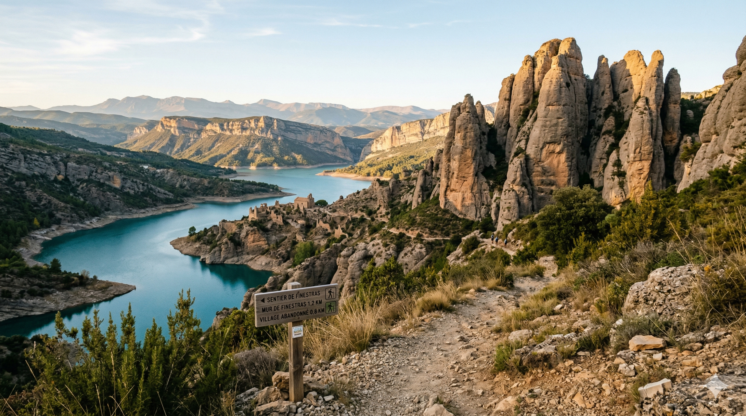 Les murailles de Finestras sont deux immenses parois rocheuses parallèles dressées au-dessus du lac de Canelles, dans la province de Huesca, en Aragon. Ce site naturel exceptionnel, surnommé la "muraille de Chine aragonaise", réunit en un seul endroit falaises spectaculaires, lac turquoise, village abandonné et vestiges historiques. Voici ce que vous devez savoir avant de partir :