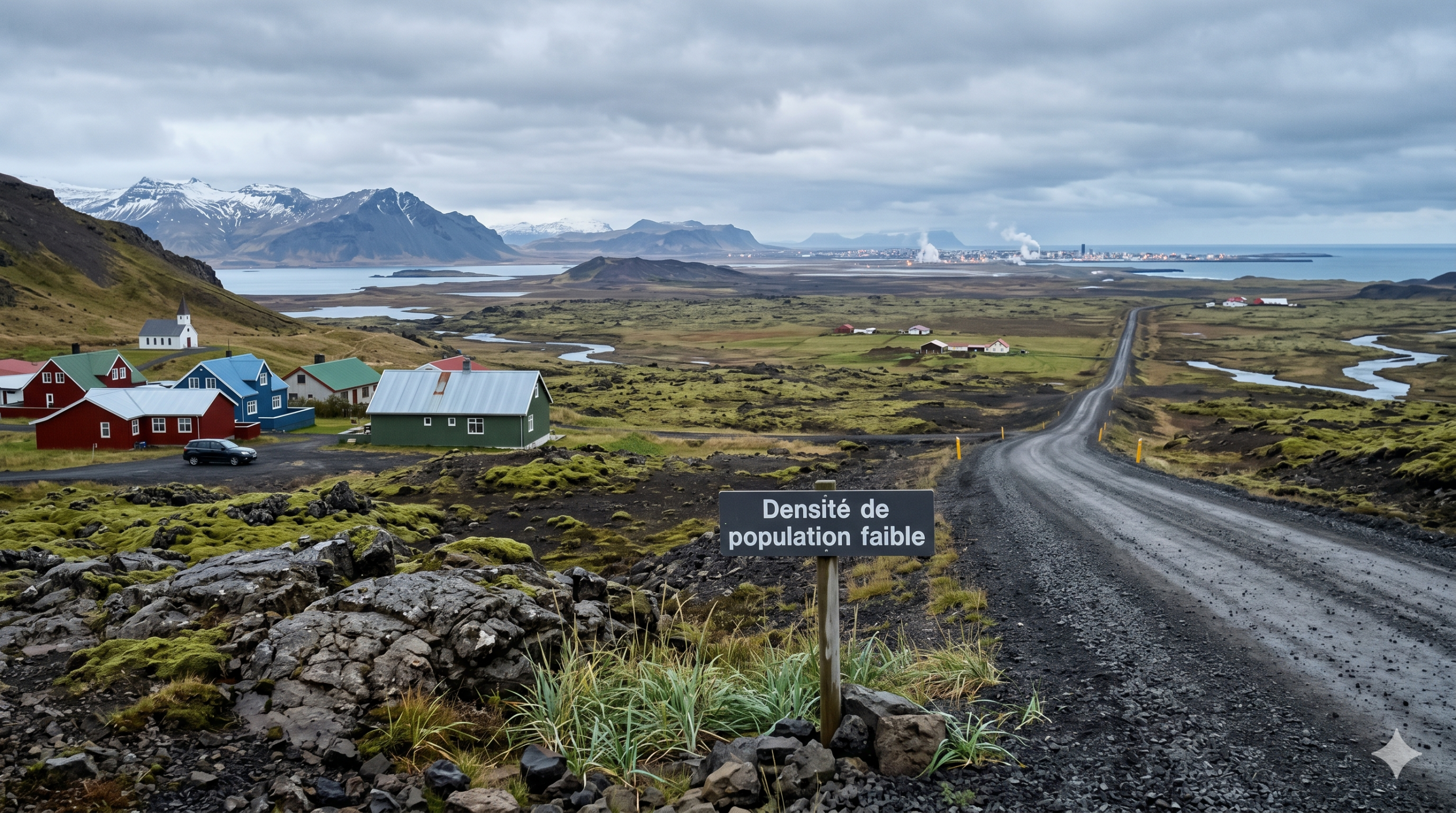 L’Islande affiche une densité de population d’environ 3,7 à 4 habitants par km². Ce chiffre place le pays parmi les territoires les plus vides d’Europe continentale et insulaire.