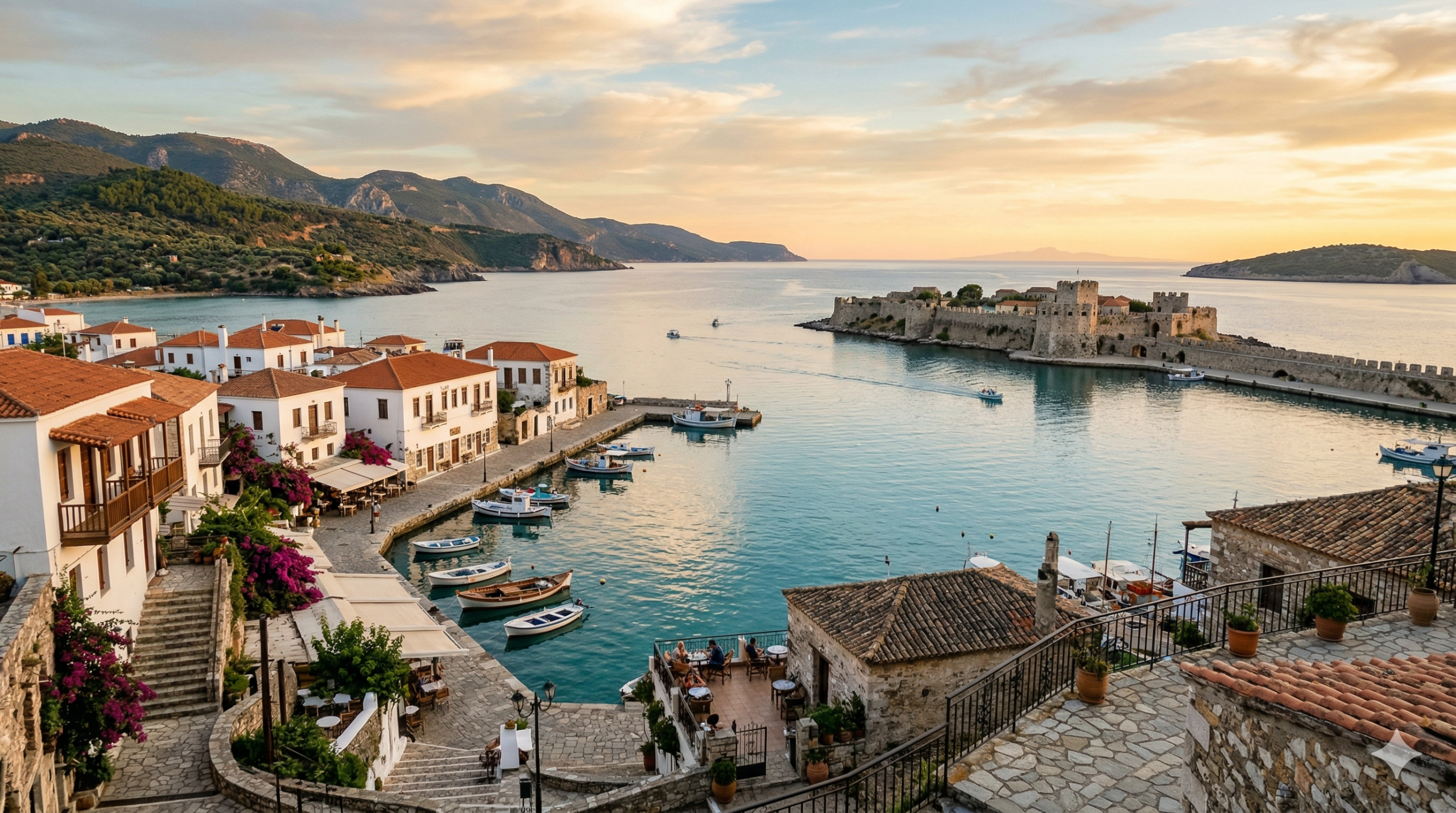 Pour les familles avec enfants, Costa Navarino offre des infrastructures exceptionnelles : piscines, clubs enfants et restauration sur place. Pour un séjour plus authentique et économique, le centre-ville de Pylos ou le village de Gialova sont nos recommandations.