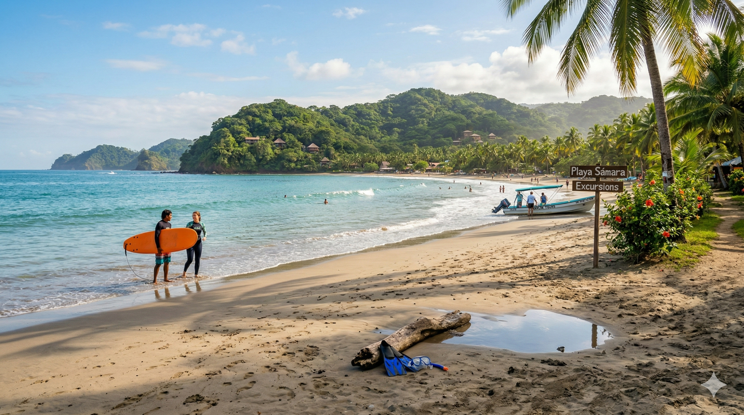 Playa Sámara : baignade, snorkeling et surf débutant dans une baie protégée