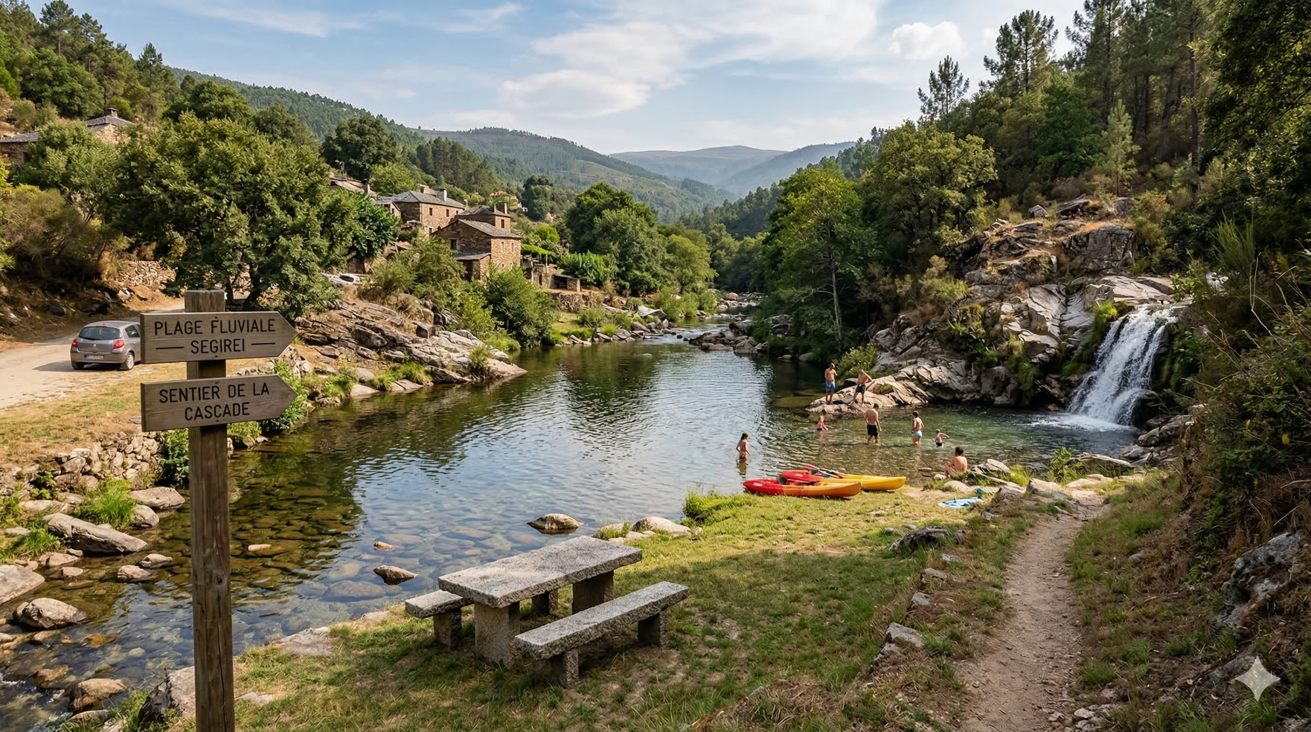 Segirei vous réserve une expérience rare : baignade en rivière gratuite, cascade impressionnante et sentiers forestiers à deux pas de la frontière espagnole. Ce petit hameau de Trás-os-Montes figure parmi les endroits les plus préservés du nord du Portugal, et il le reste parce qu’il reste encore confidentiel.