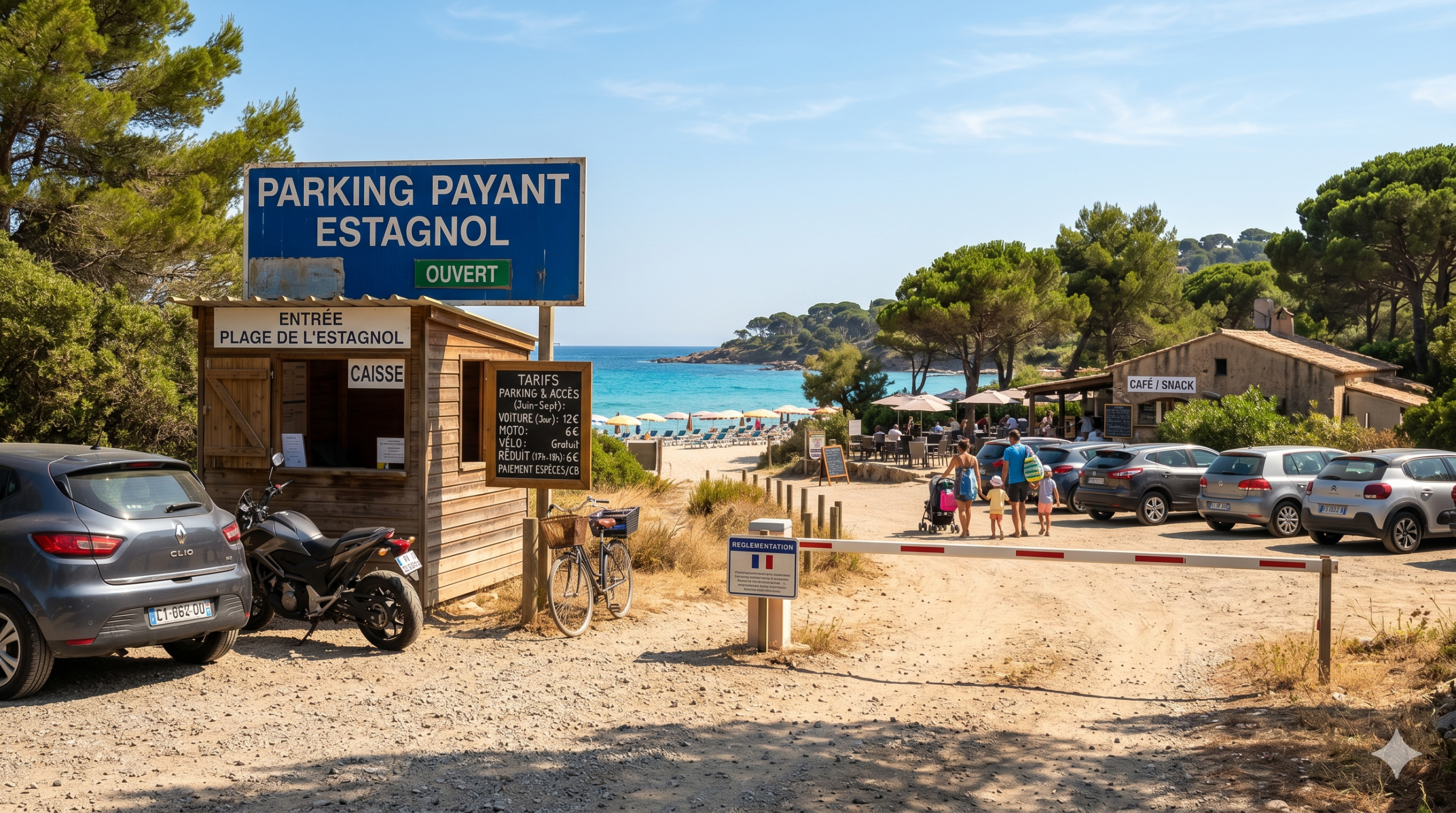 La plage de l’Estagnol fait partie d’un domaine privé appartenant à une même famille depuis 1830. Il n’existe pas de billet d’entrée classique comme dans un parc thématique. Ce que vous payez, c’est avant tout l’accès au parking du domaine, qui conditionne votre visite si vous venez en voiture. L’accès à la plage elle-même est libre une fois sur place. Ce point prête souvent à confusion. Beaucoup de visiteurs pensent payer une "entrée plage" alors qu’il s’agit uniquement du stationnement. Gardez cela en tête pour bien calibrer votre budget.